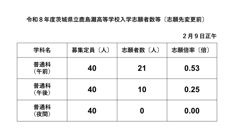 2026/ 2/ 9 令和8年度 入学志願者数等〔志願先変更前〕を更新しました。